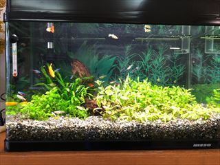 納入、メンテナンス内容 お客様名藤田小児科内科医院 様納入年月1998年 5月メンテナンスの種類換水メンテナンス水槽75cm熱帯魚水槽 水草の状態が良いので回収を行いました。エサ汚れが多いので上部フィルターの掃除を行い、エサをよく食べるゴールデンモー... -